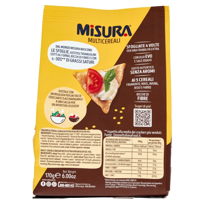 Farina di grano tenero tipo "2" 65%- Olio extra vergine di oliva- Fiocchi di patate- Farina di mais 6%- Farina di fiocchi di avena 4%- Farina di riso 4%- Farina di fiocchi di grano farro 4%- Lievito madre essiccato (grano)- Lievito di birra- Sale iodato 1,7% (sale, iodato di potassio)- Farina di frumento fermentato- Siero di latte in polvere- Antiossidante: estratti di rosmarino.