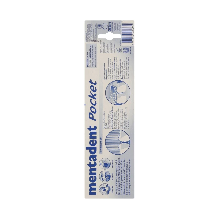 Dentifricio 16 ml, Aqua, Sorbitol, Hydrated silica, PEG-32, Sodium lauryl sulfate, Aroma, Zinc citrate, Sodiun fluoride, Cellulose gum, Sodium saccharin, Limonene, CI 42090, CI 74260, CI 77891, Contiene fluoruro di sodio