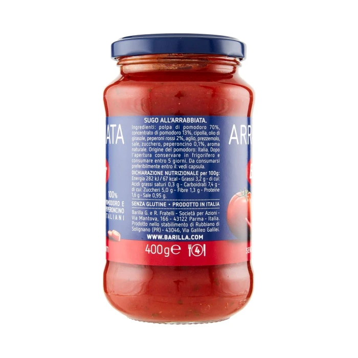 Barilla Sugo Arrabbiata 100% Pomodoro e peperoncino italiani Condimento per Pasta 400g