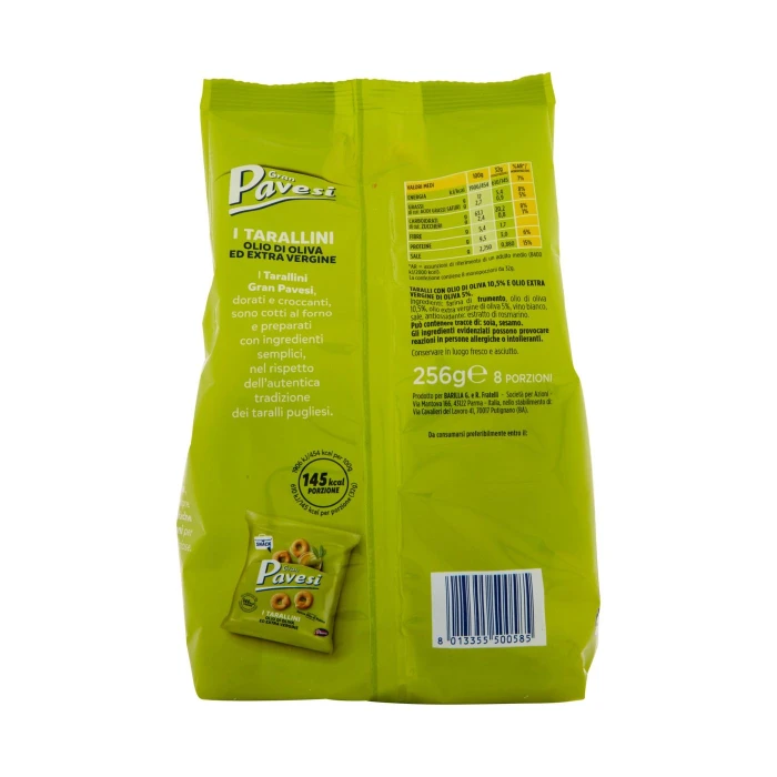 Gran Pavesi Snack Tarallini Olio di Oliva ed Extra Vergine, Senza Olio di Palma, 8 Pacchetti 256g
